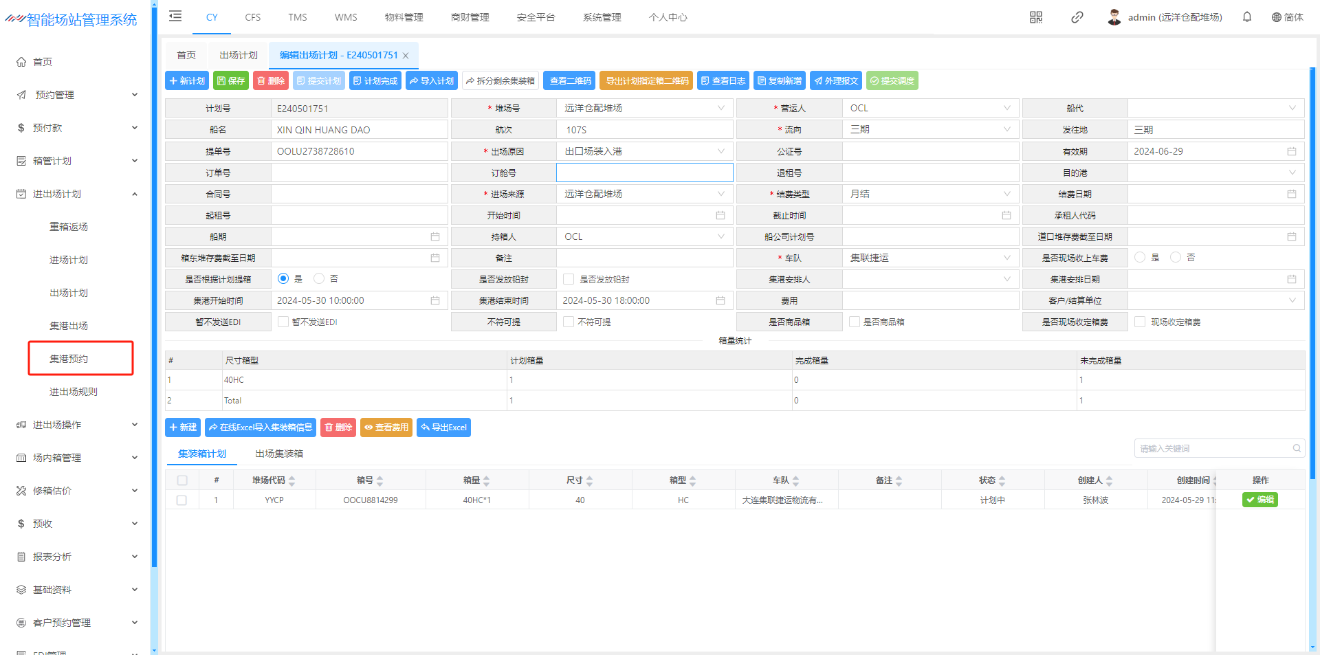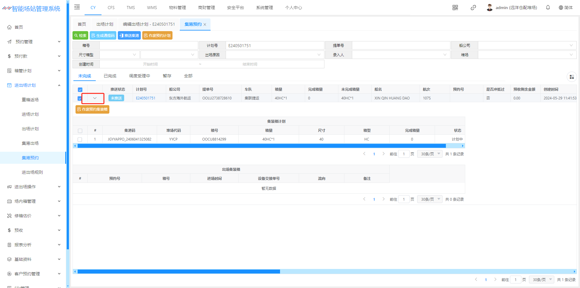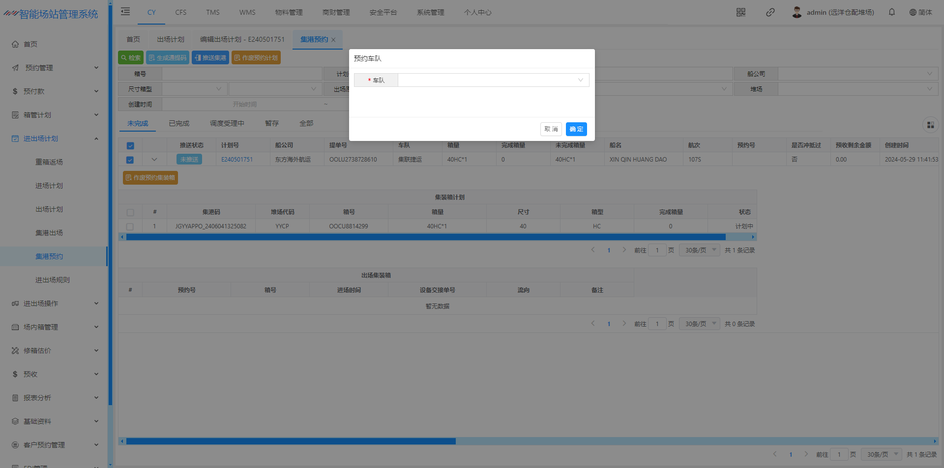 进场计划(空箱计划)