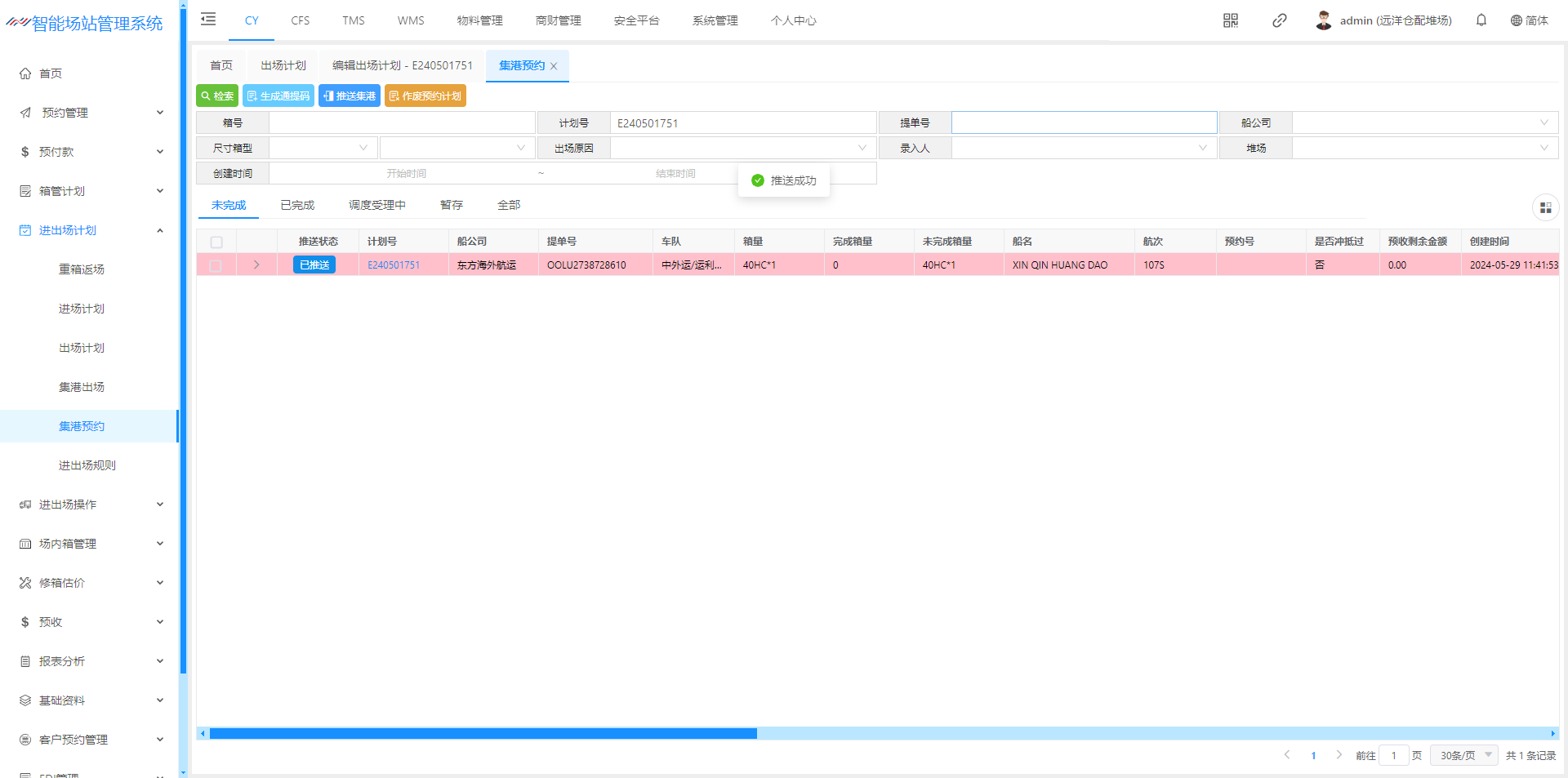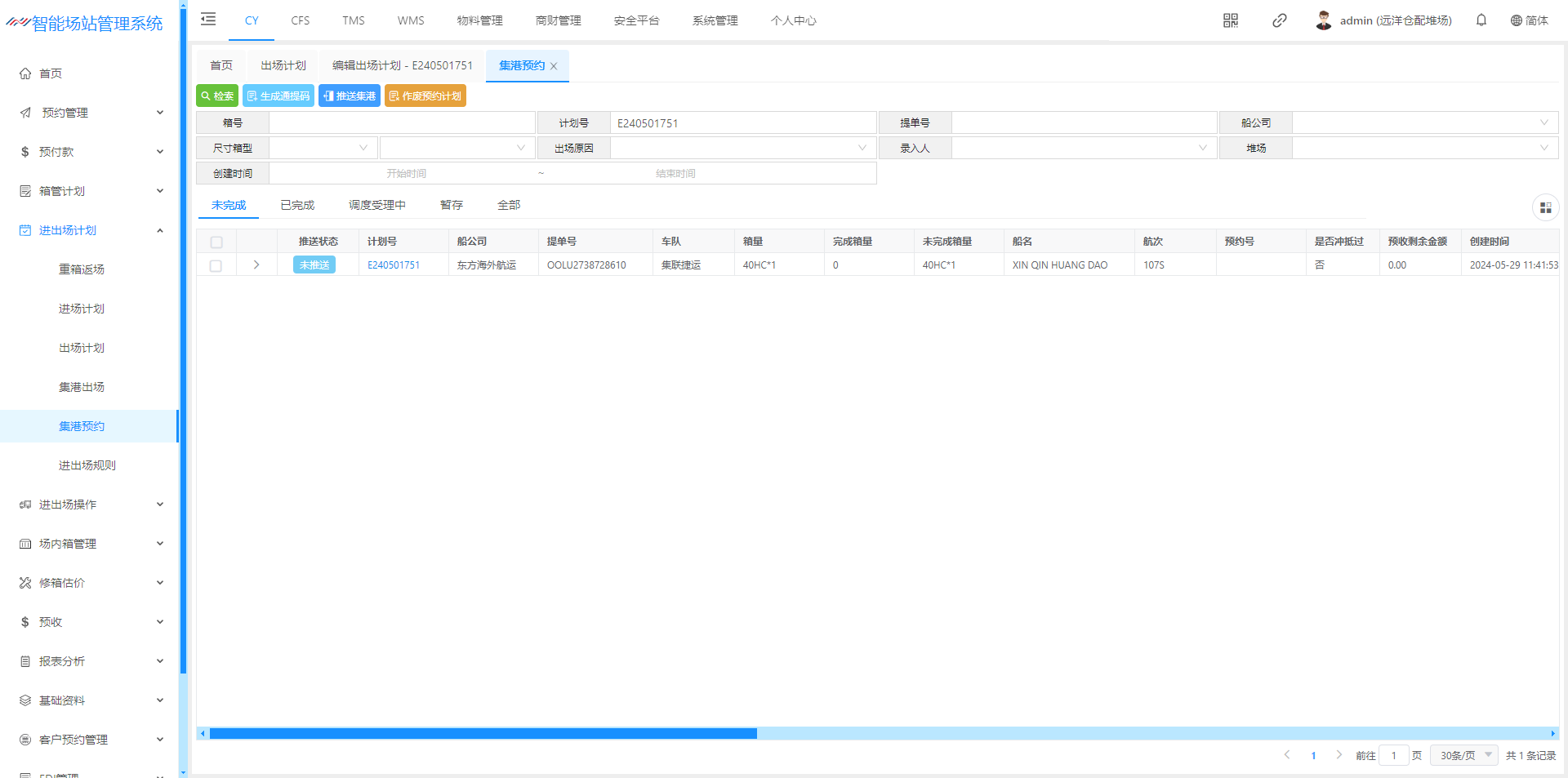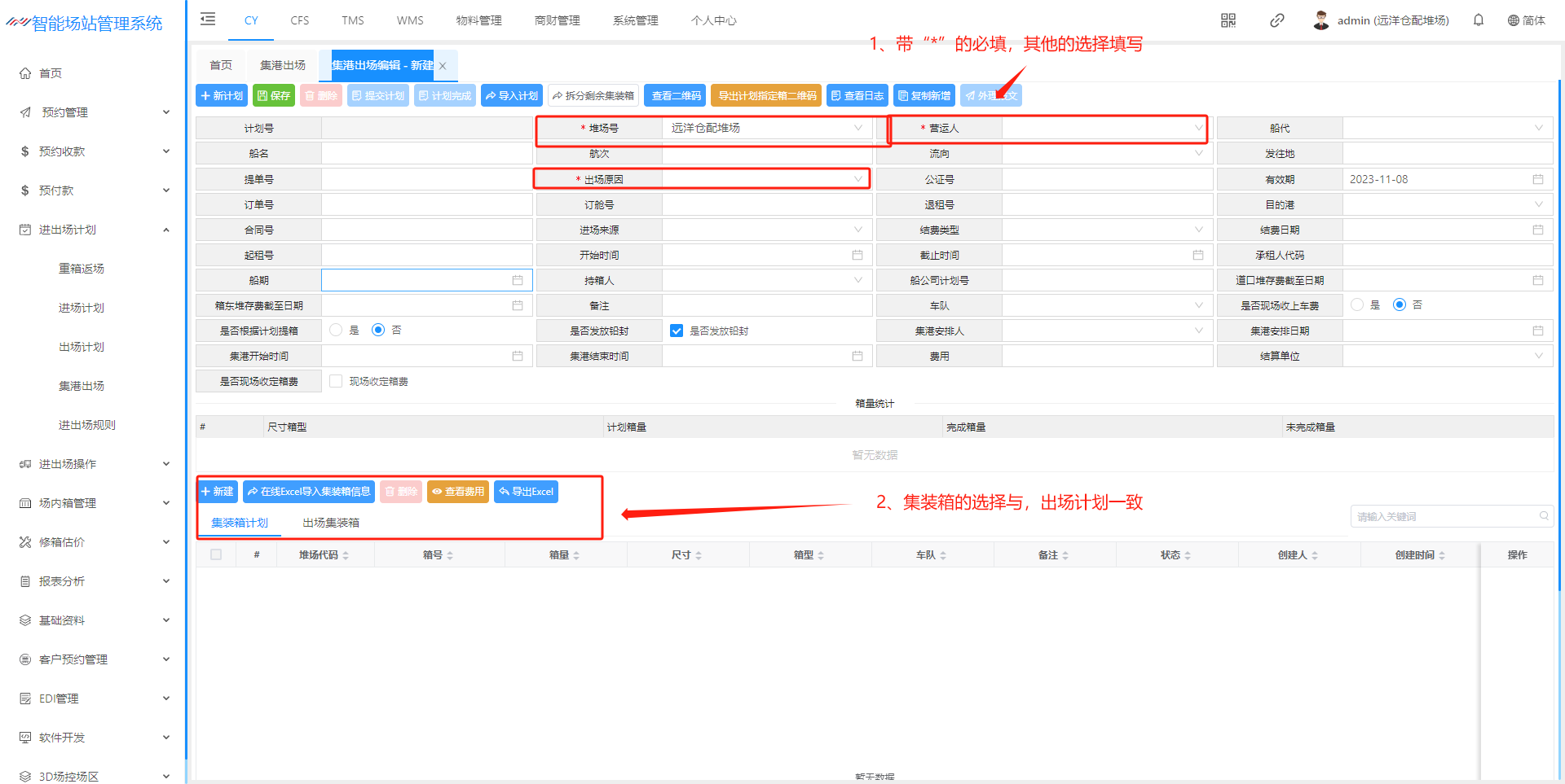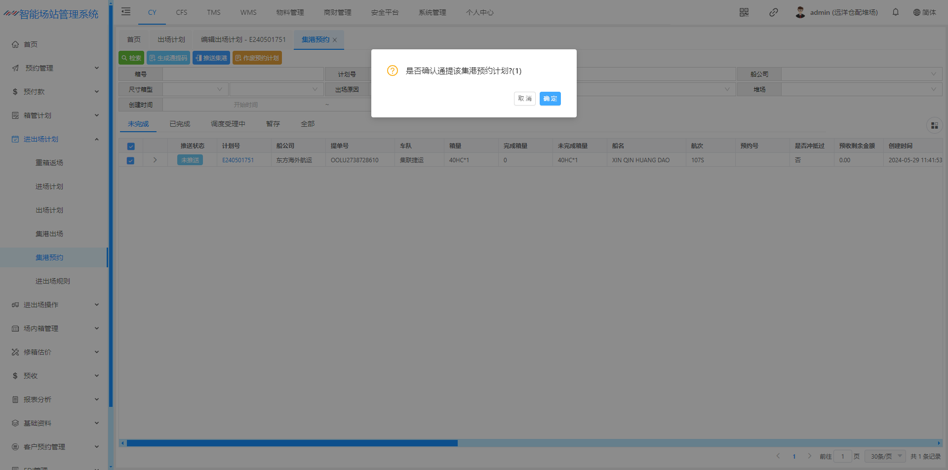 进场计划(空箱计划)