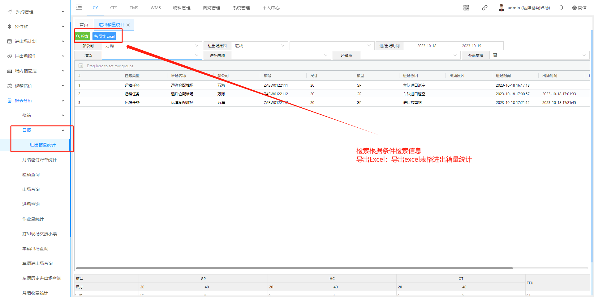 > <span style="font-family:楷体">可以根据条件检索,导出excel修箱量统计表</span>