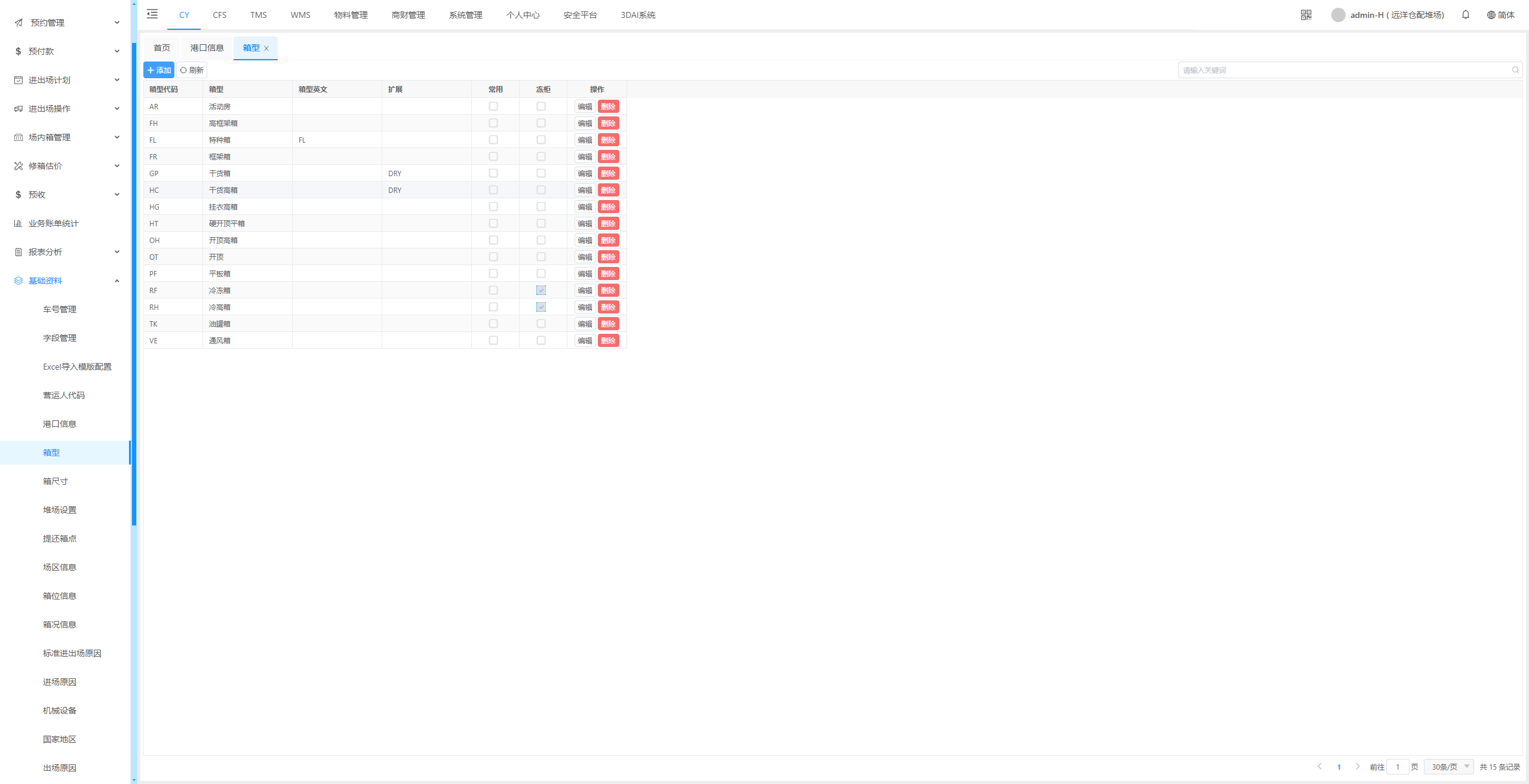 维护箱型信息,选择是否为干箱,冷箱 箱管做计划时下拉选择