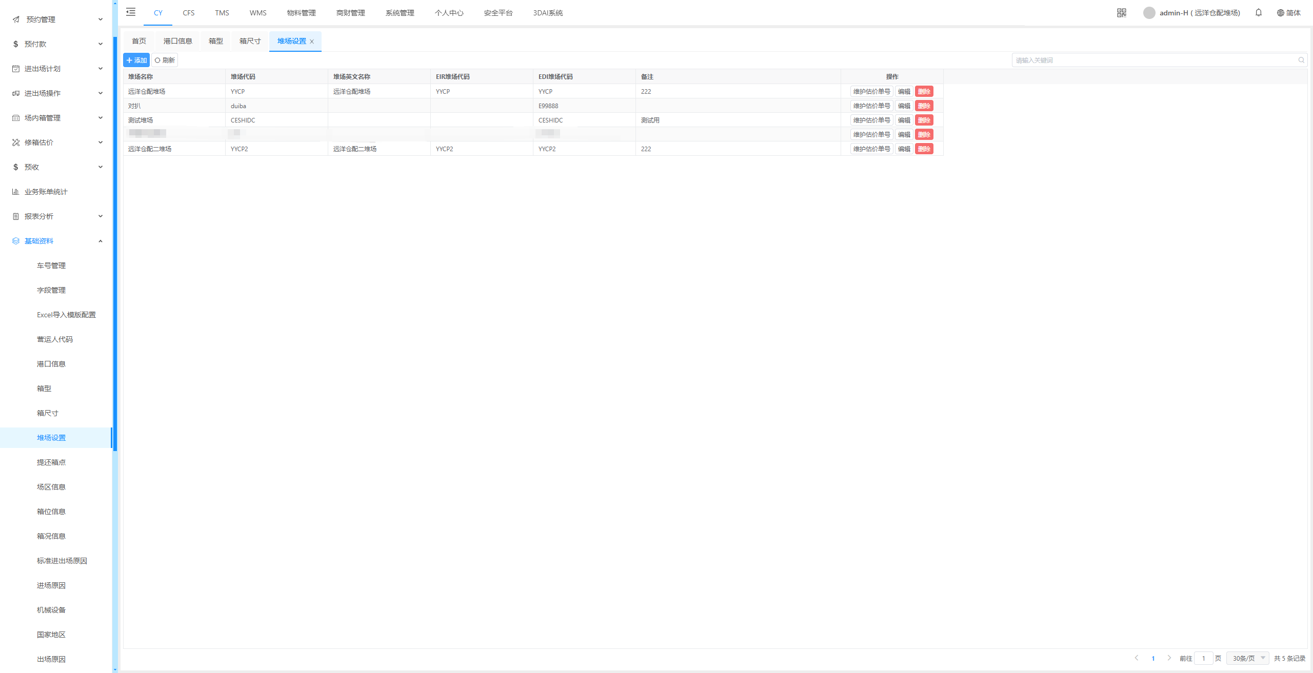 维护堆场信息,在用户登录时选择堆场信息 堆场直接信息不互通