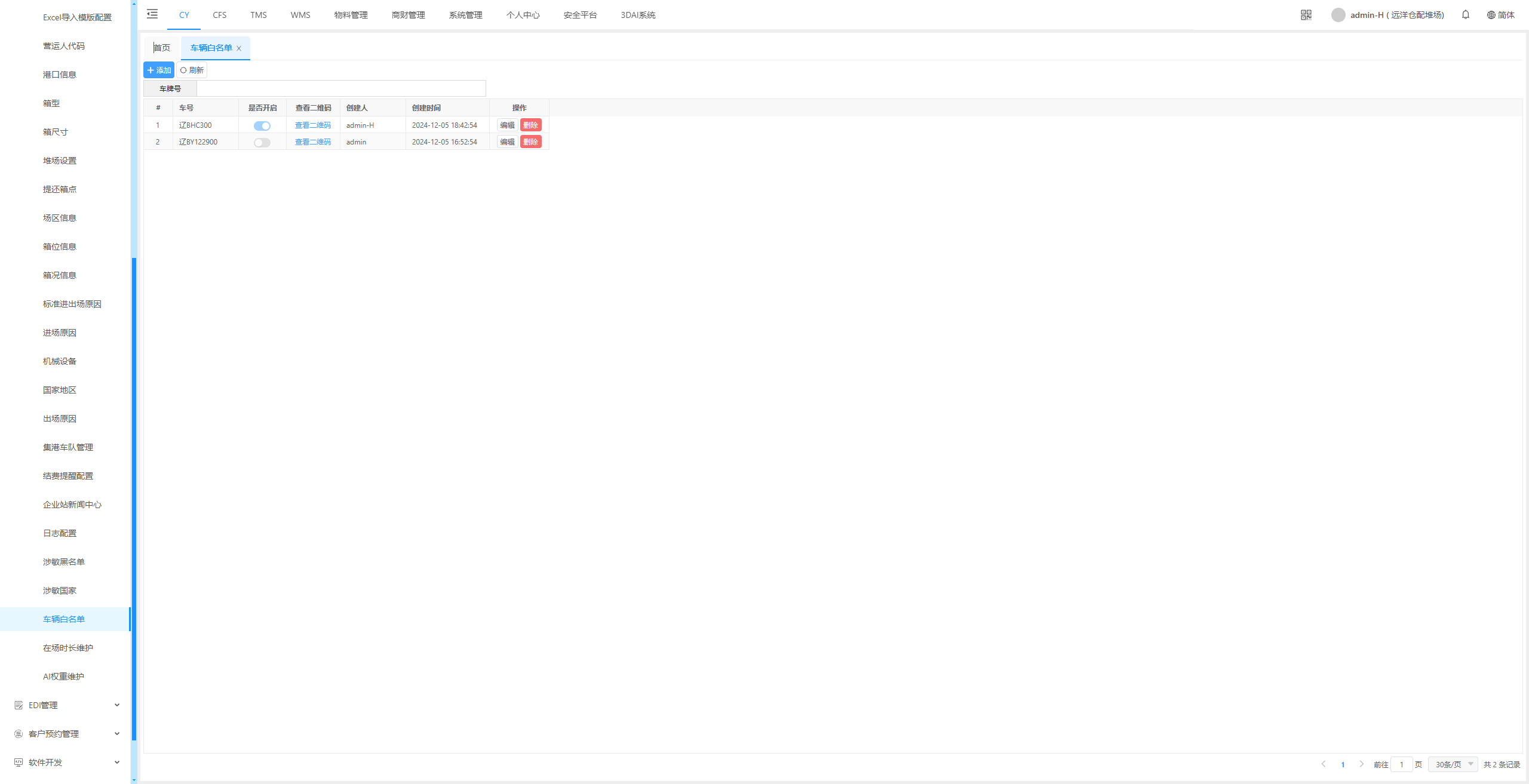 车辆白名单