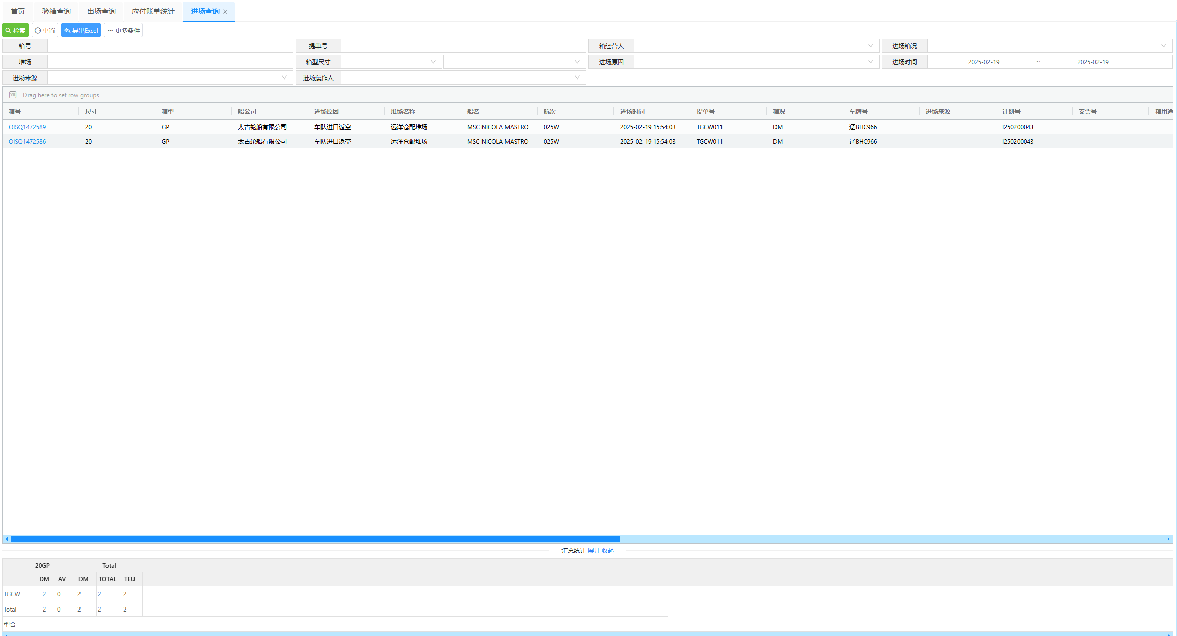 查询进场集装箱详细信息