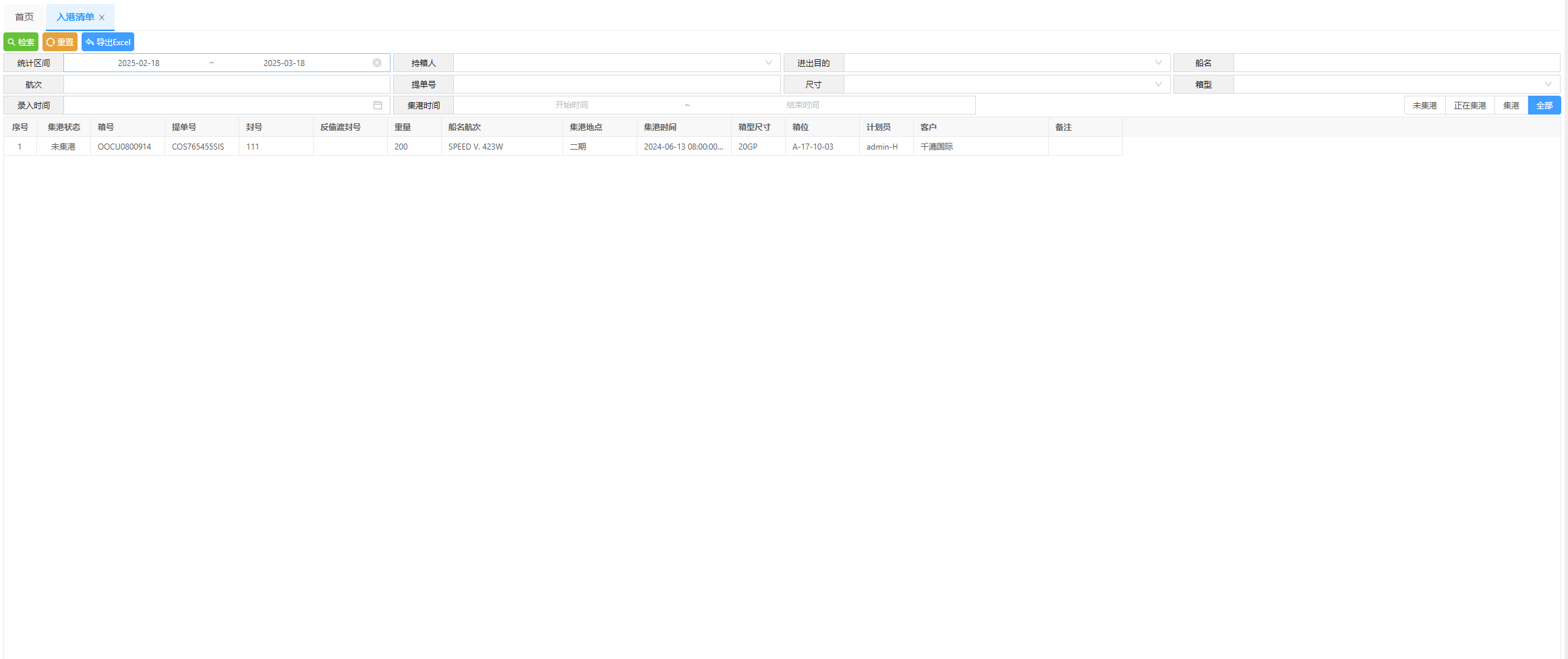 查询出口委托已经完成、理货完成的信息;查询出那些没有入港的集装箱,到集港时间安排入港