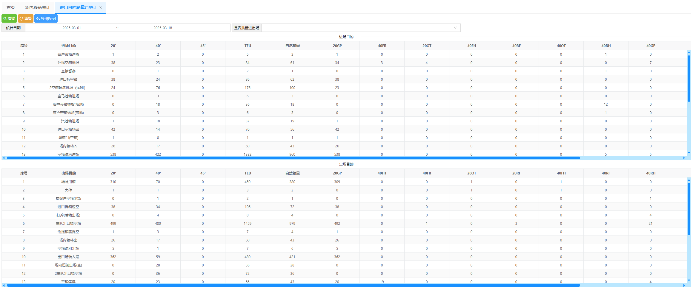 进出目的箱量月统计 查询导出进出目的箱量月统计