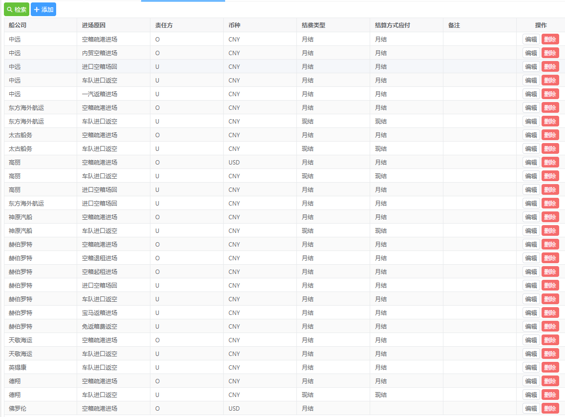 维护船公司、进场原因、责任方、解锁方式 当估价批复生成账单时,按照次页面维护的数据决定账单的币种、应收应付的结费类型