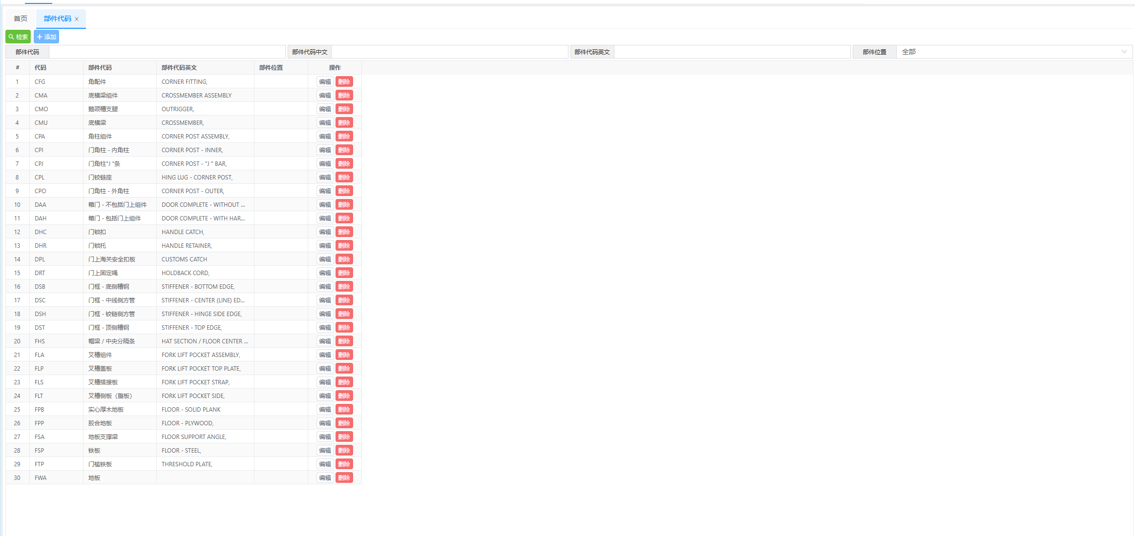 维护几张下维修部件代码,用于在维护修箱费率时选择部件信息