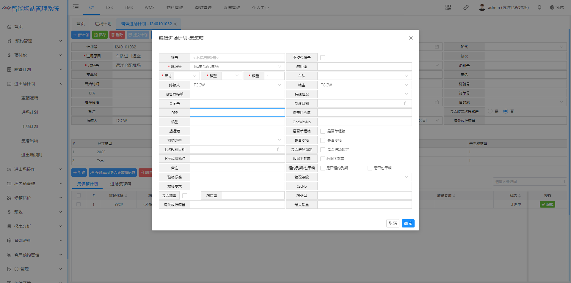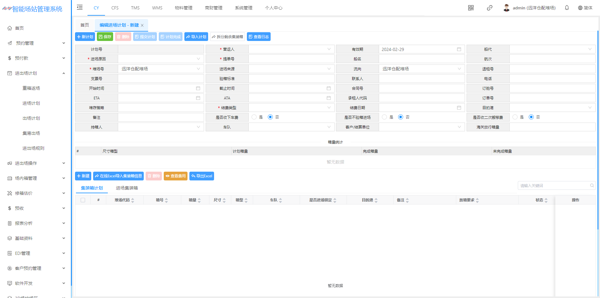 进场计划(空箱计划)