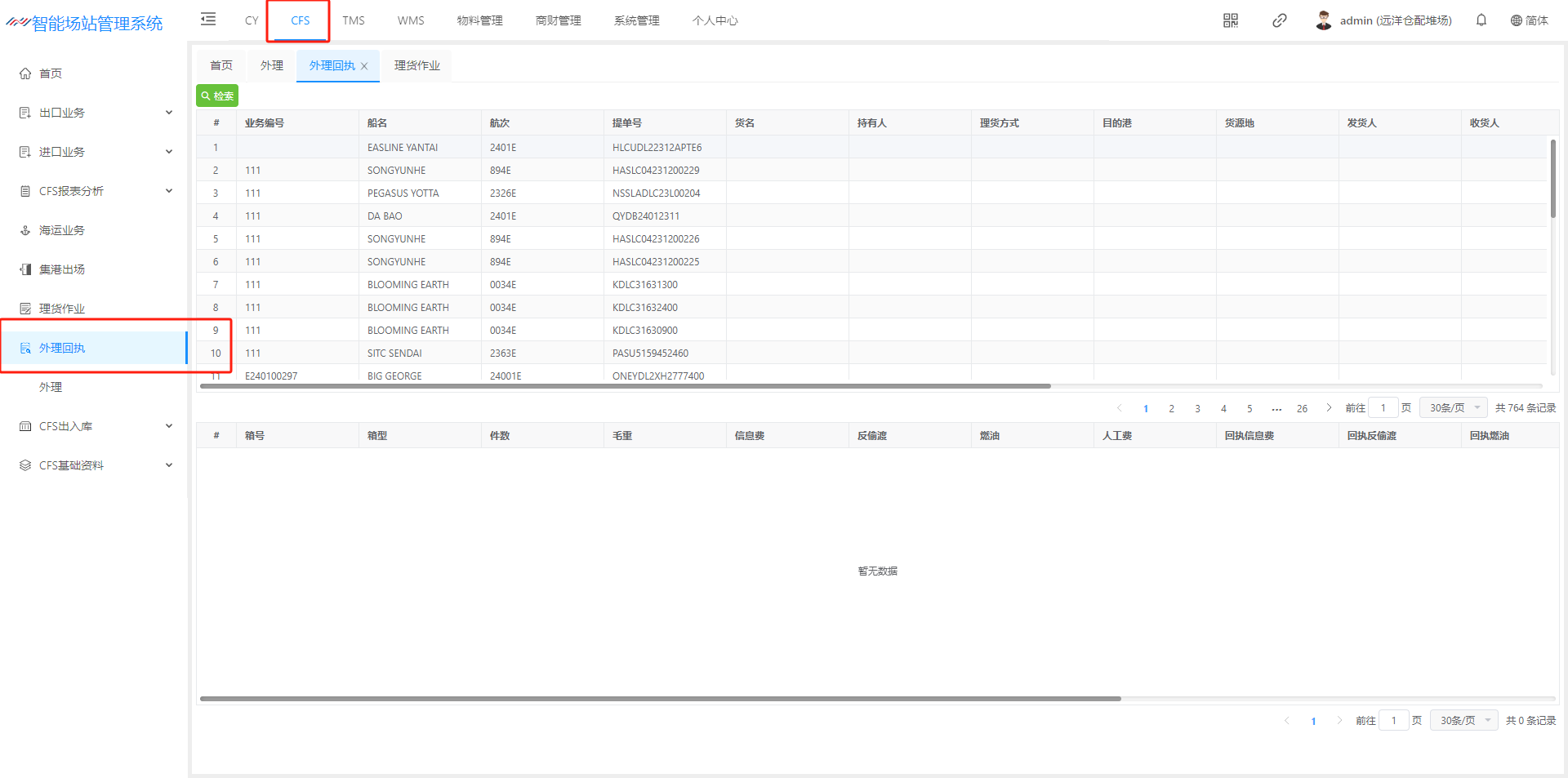 ## 列表功能介绍: 外理回执用于查看,已发送的外理信息