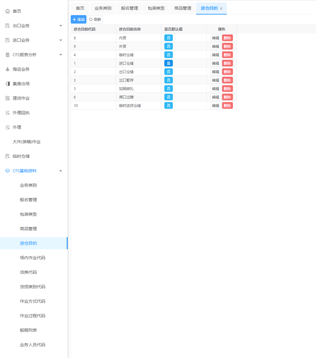 维护仓储进仓目的 用于临时仓储与正式仓储的选择