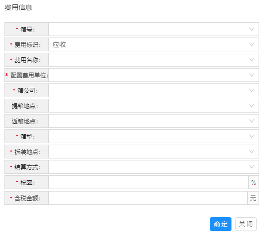 上述填写的,委托单位、货主、提箱地点、返箱地点、内部结转对象、其他结转对象,会在“费用结算”页面结算单位下拉框中显示。用于选择结算单位后生成结算单位的应收应付费用