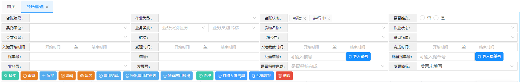 一个提单号为一个业务台账,每个业务台账都有台账编号,台账编号为系统自动生成并不可重复。