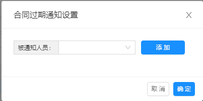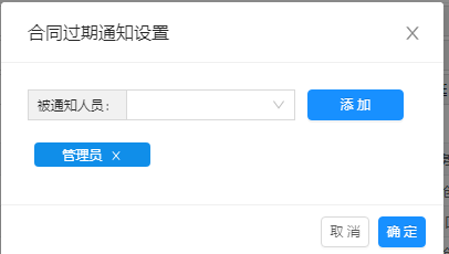 5、过期通知:点击操作列上的该按钮,弹出以下页面,可以显示出当前合同已经设置的通知人员。可以对人员进行编辑。