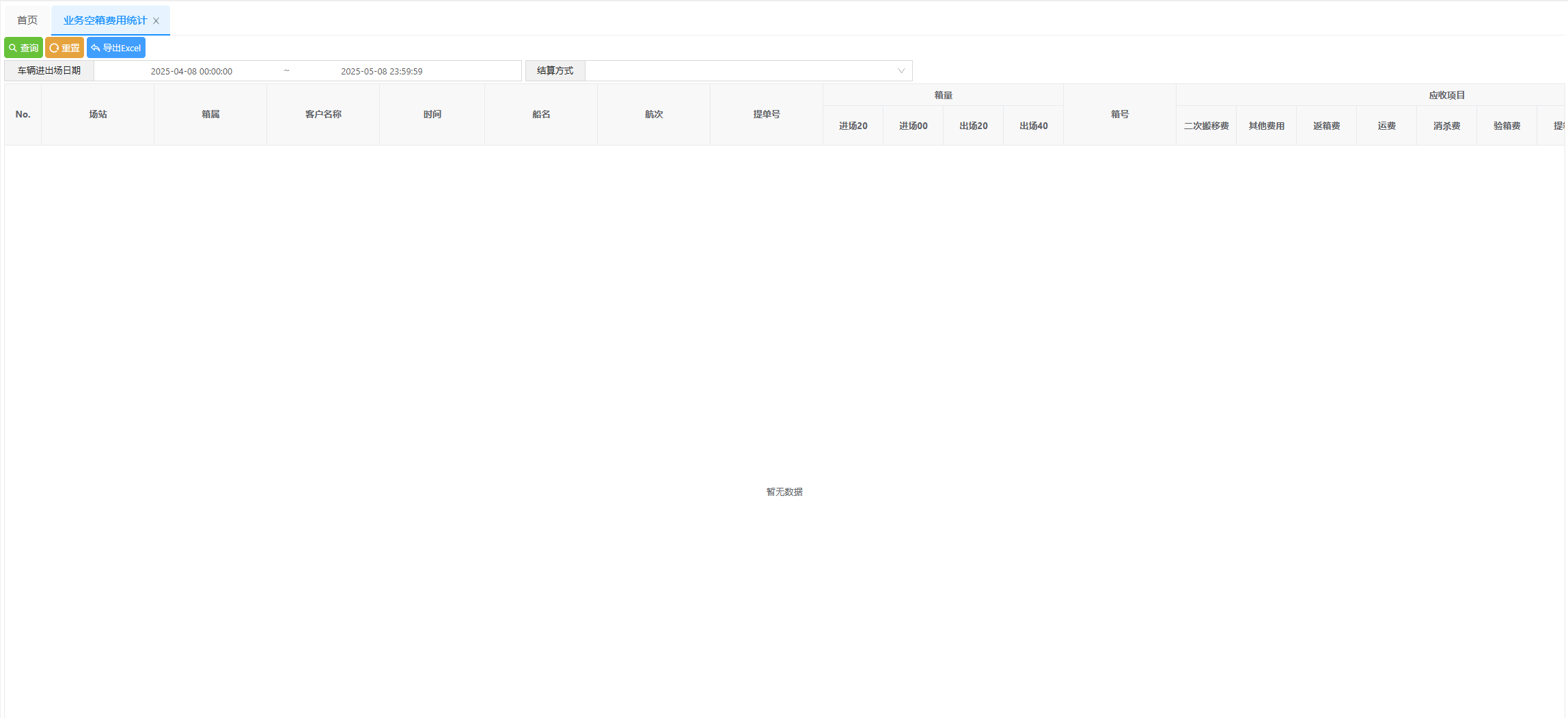 按照车进出场时间导出这个时间范围内,所有业务下所有应收应付的费用