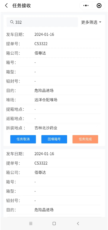 该模块用于司机登录系统后,只能看到调度人员,调度给自己的任务信息。并可以对调度的任务进行抢单,抢单后进行执行,完成后点击完成。