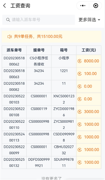 注:只展示自有司机的工资,司机只能看到自己的工资