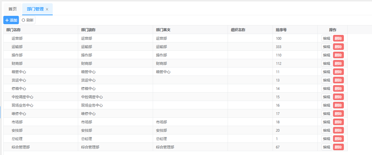 部门管理,维护企业下部门信息,用于用户管理中选择